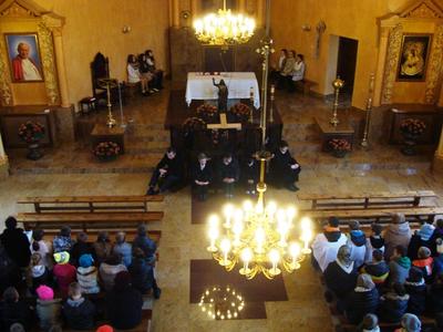 Z okazji 96 rocznicy odzyskania niepodległości przez Polskę młodzież naszej szkoły w Kościele pod wezwaniem Miłosierdzia Bożego w Harasiukach w dniu 14 listopada zaprezentowała widowisko oparte na motywach III części ,,Dziadów” - utworu, który poeta zadedykował ,,NARODOWEJ...