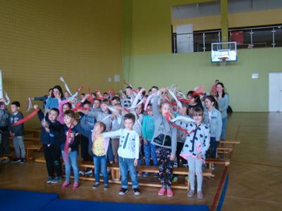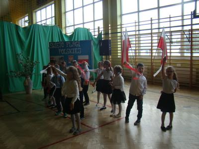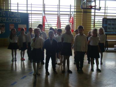 27 kwietnia 2018 roku w naszej szkole odbyła się uroczysta akademia poświęcona Dniu Flagi Rzeczypospolitej Polskiej. Święto Flagi obchodzimy 2-go maja. To jedno z najmłodszych świąt państwowych. Program artystyczny przygotowały 6-latki, które pięknie recytowały wiersze i śpiewały piosenki o naszej Ojczyźnie, jej historii, wielkich rodakach, ważnych miastach i rzekach oraz naszych symbolach narodowych takich jak: godło, flaga i hymn. Na koniec uroczystości wszystkie dzieci musiały zdać egzamin, odpowiadając na trudne zagadki. Myślę, że z treści zawartych w tej uroczystości wszystkie maluchy, to jest dzieci z innych grup przedszkolnych jak i dzieci z klas I-III wiele się nauczyły o naszym pięknym kraju, o ważnych wydarzeniach mających wpływ na losy naszego narodu, a przede wszystkim już wiedzą na pewno, że naszą piękną Ojczyznę i symbole narodowe trzeba kochać i szanować - nie tylko od święta. Wiedzą, że nasza biało-czerwona flaga jest symbolem łączącym wszystkich Polaków i stanowi widoczny symbol ich przynależności narodowej. To była piękna lekcja patriotyzmu.