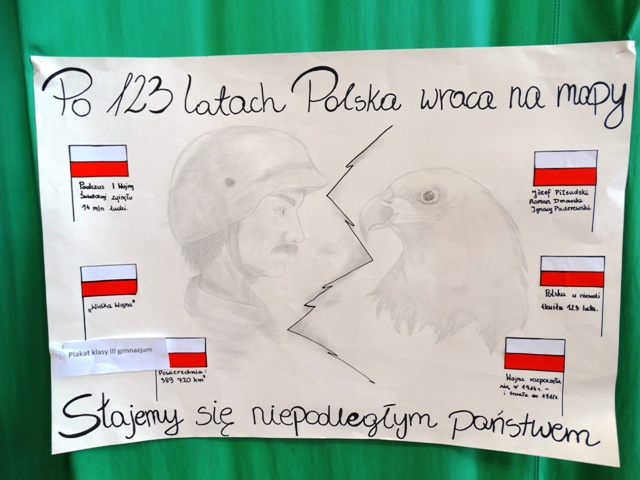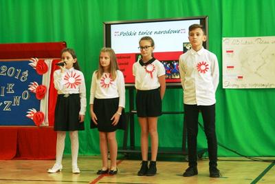 - Wspólne odśpiewanie Mazurka Dąbrowskiego o godz. 1111 przez wszystkich uczniów, nauczycieli, grup przedszkolnych oraz pracowników szkoły podstawowej i gimnazjum.