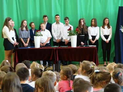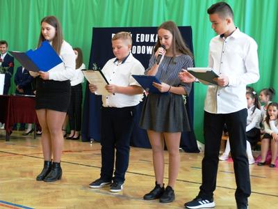 W dniu 15 października 2019r. odbyła się w naszej szkole akademia z okazji DNIA EDUKACJI NARODOWEJ. Dla wszystkich pracowników oświaty popłynęły życzenia, wiersze i piosenki przygotowane przez uczniów klasy VIII oraz chór szkolny.