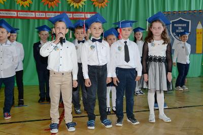 Dnia 25 października 2019 r. uczniowie klasy pierwszej bardzo uroczyście świętowali oficjalne przyjęcie pierwszoklasistów do grona społeczności szkolnej Publicznej Szkoły Podstawowej w Harasiukach. Podczas akademii pierwszoklasiści recytowali wiersze i śpiewali piosenki. Wykazali się wiedzą o swojej ojczyźnie, o ruchu drogowym, zdrowym odżywianiu, a także znajomością zasad zachowania się w szkole. Po części artystycznej Uroczystego Pasowania na Ucznia dokonała dyrektor naszej szkoły Pani Renata Mucha. Wręczyła uczniom pamiątkowe dyplomy oraz złożyła pierwszakom gratulacje i życzenia. Po oficjalnej uroczystości świeżo upieczeni uczniowie spotkali się w klasie na słodkim poczęstunku, przygotowanym przez Rodziców.