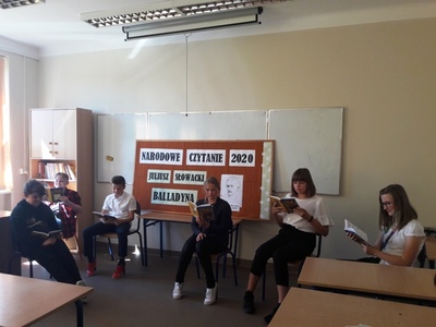 W dniach 8 i 9 września 2020 r. klasy VI-VIII wzięły udział w dziewiątej edycji Narodowego Czytania. Uczniowie pod opieką nauczycieli polonistów i nauczyciela bibliotekarza odczytali fragmenty „Balladyny” Juliusza Słowackiego.