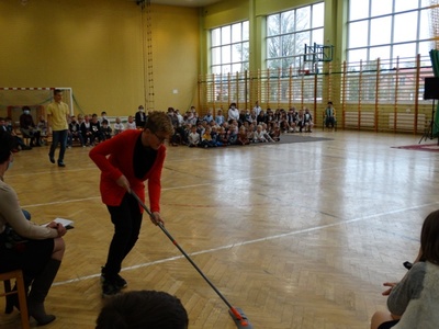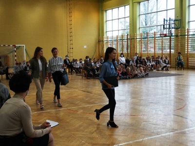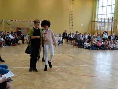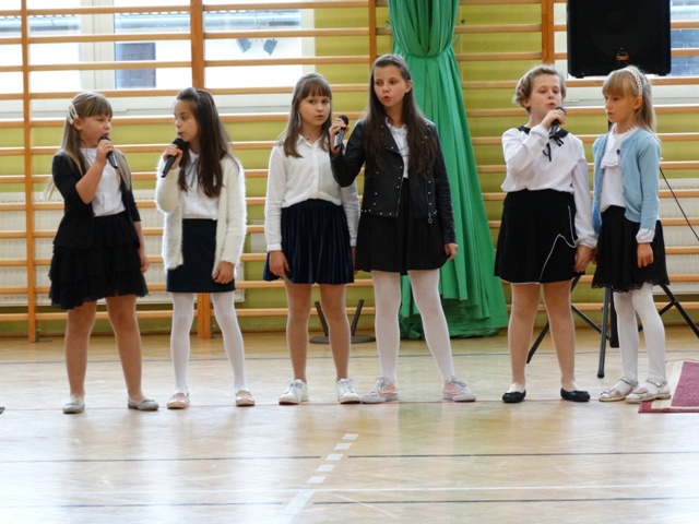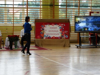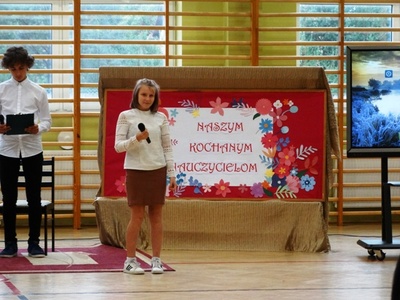 Samorząd Uczniowski oraz uczniowie klasy VII b w " Koncercie Życzeń" wyrazili wiele ciepłych i serdecznych słów. Nie zabrakło też dobrego humoru. Przedstawiono wyniki sondażu na temat : "Za co uczniowie lubią swoich nauczycieli". Na koniec spotkania cała społeczność uczniowska zaśpiewała gromkie 100 lat.