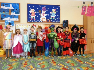 W dniach 10 i 11 lutego 2021r. w klasach I - III odbył się BAL PRZEBIERAŃCÓW. Każda klasa indywidualnie wraz ze swoją wychowawczynią urządziła w tym dniu wspólne zabawy i tańce przy muzyce. Tradycyjnie odbył się konkurs na najładniejszy strój. Wszystkim dopisał dobry humor i wszyscy wesoło się bawili.
