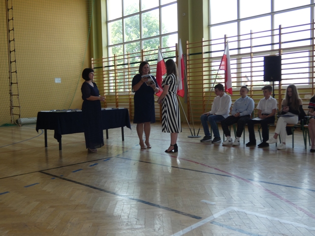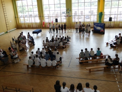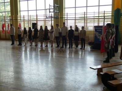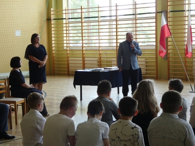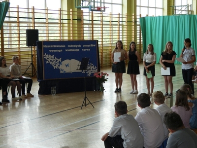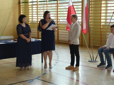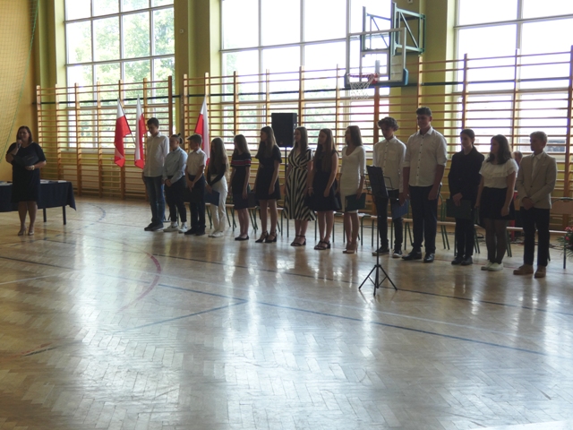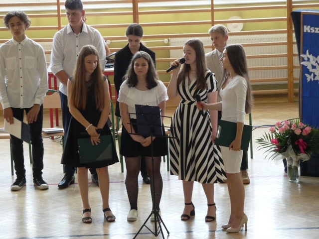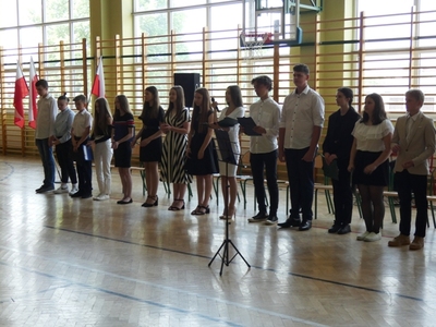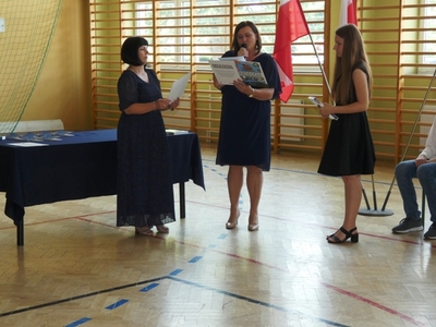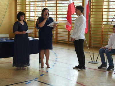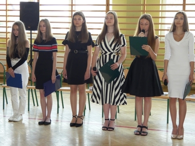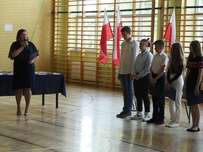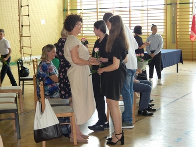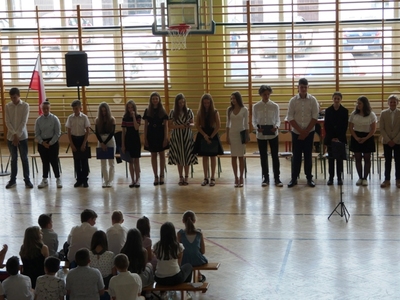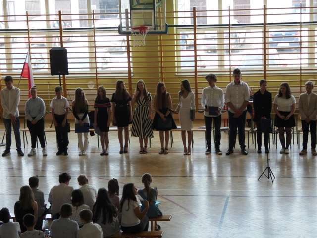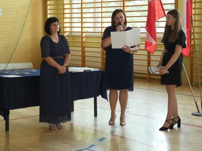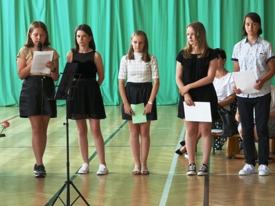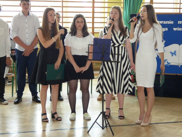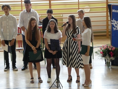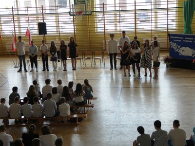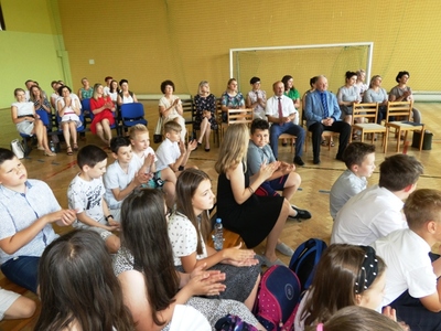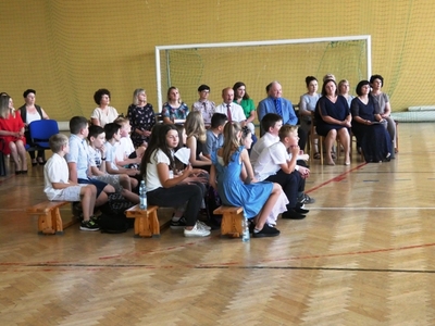 23 czerwca 2021r. w naszej szkole odbyła się uroczysta akademia z okazji ukończenia szkoły podstawowej. Na uroczystość przybyli zaproszeni goście, nauczyciele, rodzice oraz uczniowie. Z tej okazji klasa VIII przygotowała pod kierunkiem pani Anety Maciuk-Bogusz część artystyczną. Wiele ciepłych i miłych słów płynęło w kierunku naszych nauczycieli oraz zaproszonych gości z ust uczniów recytujących wiersze. Ten wyjątkowy dzień uświetniły utwory muzyczne w wykonaniu uczennic, przygotowane pod kierunkiem pani Beaty Kasprowicz. Podczas uroczystości głos zabrała Pani Dyrektor Renata Mucha, która gratulowała absolwentom osiągniętych wyników i życzyła dostania się do wymarzonych szkół. Wyróżnieni uczniowie otrzymali z rąk Dyrektora Szkoły dyplomy i nagrody książkowe, a rodzice listy gratulacyjne. Siódmoklasiści pod opieką wychowawców ciepło pożegnali starszych kolegów opuszczających mury naszej szkoły, dodatkowo obdarowując ich drobnymi upominkami.