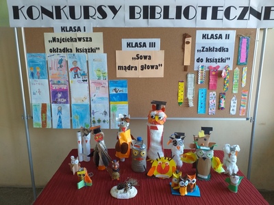 Uczniowie klas I-III wzięli udział w konkursach plastycznych organizowanych przez bibliotekę szkolną.