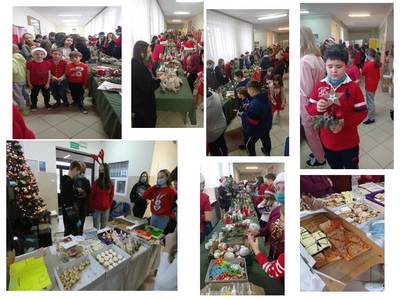10  grudnia 2021 r. zorganizowaliśmy na terenie szkoły Kiermasz Bożonarodzeniowy. Można było tu nabyć ozdoby świąteczne własnoręcznie wykonane przez uczniów, rodziców   i nauczycieli. Wśród zapachu ciast i pierników można było zakupić moc świątecznych atrakcji: bombki, stroiki, choinki, kartki bożonarodzeniowe, gipsowe aniołki