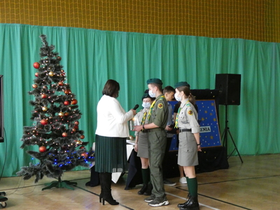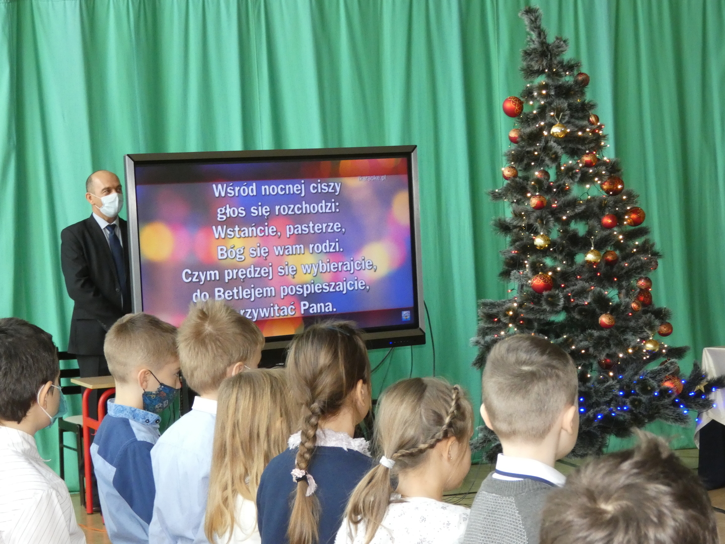 17 grudnia 2021 r. odbyło się uroczyste spotkanie społeczności szkolnej z okazji zbliżających się świąt Bożego Narodzenia. Wspólnie obejrzeliśmy wzruszający film pt. „Niezwykły pasterz” oraz śpiewaliśmy najpiękniejsze polskie kolędy. Harcerze z działającej przy szkole DH IGNIS przekazali pani Renacie Mucha- dyrektorowi szkoły Betlejemskie Światło Pokoju przemierzające wszystkie kontynenty w niezwykłej sztafecie.