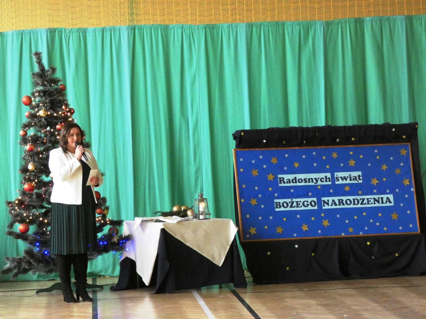 Pani Dyrektor złożyła wszystkim serdeczne, ciepłe życzenia. Na zakończenie nauczyciele zaśpiewali dla uczniów kolędę „Cicha noc” i poczęstowali upieczonymi przez siebie piernikami.