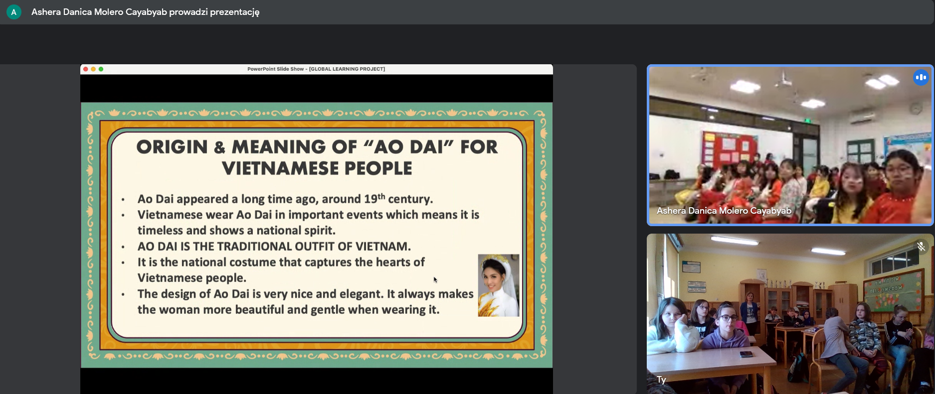 Dzisiaj, 25 kwietnia, uczniowie klasy IV naszej szkoły spotkali się online z kolegami z Wietnamu. Było to pierwsze spotkanie w ramach Global Learning Project. Szkoła Vinschool Central Park w Ho Chi Minh city zaprosiła nas do wspólnego przygotowania lekcji o strojach narodowych naszych krajów. Na rozgrzewkę uczniowie zagrali w Kahoota – quiz online sprawdzający wiedzę ogólną na poruszany temat, a następnie omawiali przygotowane wcześniej prezentacje. Językiem spotkania był oczywiście język angielski. Starsi koledzy zaprezentowali się w strojach ludowych naszego regionu wypożyczonych z Gminnego Centrum Kultury w Harasiukach, za co serdecznie dziękujemy.