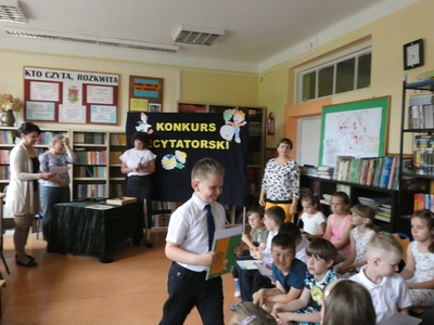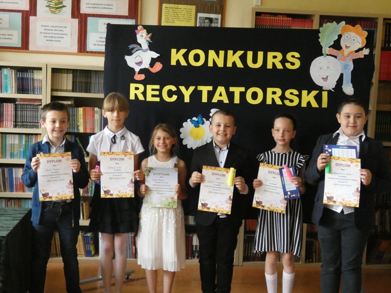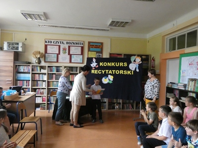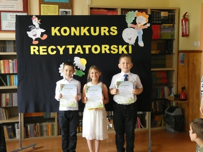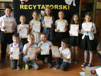 Dnia 10.06.2022r. w naszej szkole odbył się Szkolny Konkurs Recytatorski pt. "Mistrz Recytacji" dla uczniów klas I- III. Tematem konkursu były ulubione wiersze Jana Brzechwy i Juliana Tuwima. W konkursie wzięło udział 25 uczniów. W kategorii uczniów klasy I Mistrzem Recytacji został Dominik Żyła, w kategorii uczniów klasy II Mistrzem Recytacji został Hubert Strzelczyk, a w kategorii uczniów klasy III Mistrzem Recytacji została Julita Mucha. Wszyscy uczestnicy konkursu otrzymali dyplomy i drobne upominki a zwycięzcy dodatkowo nagrody książkowe. Konkurs zorganizowały panie: Wiesława Mucha, Urszula Siek i Teresa Zielonka. Wszystkim uczestnikom konkursu dziękujemy za piękne recytacje, a zwycięzcom gratulujemy!!!
