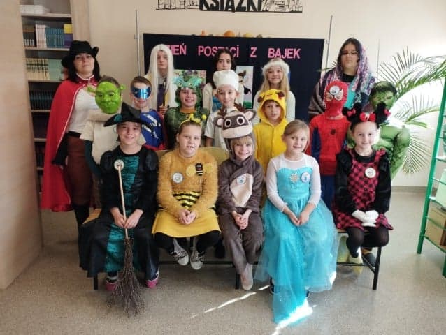 5 listopada obchodzone jest jedno z najsympatyczniejszych świąt - Międzynarodowy Dzień Postaci z Bajek. W naszej szkole ten dzień świętowaliśmy dnia 8 listopada. Z tej okazji chętni uczniowie z klas I-VIII oraz nauczyciele przebrali się za swoją ulubioną postać z bajki zakładając kolorowe stroje. Na korytarzu można było spotkać: Czerwonego Kapturka, Królewnę Śnieżkę, Kota w butach i wiele innych bajkowych postaci. Uczniowie zaprezentowali swoje stroje podczas wspólnych zabaw w Kąciku Czytelnika, przygotowanych przez uczniów z klas VI-VIII należących do Klubu Czytelnika. Ten dzień to doskonała okazja do rozwijania zainteresowań czytelniczych wśród najmłodszych uczniów szkoły. Jego celem jest nie tylko przypomnienie postaci z kultowych bajek, ale również zwrócenie uwagi na rolę wychowawczą i edukacyjną dobrych bajek, które uczą rozróżniania dobra od zła oraz prawidłowych postaw, koleżeństwa, chęci niesienia pomocy innym czy współczucia. To spotkanie sprawiło dzieciom wiele radości i niezapomnianych wrażeń. Serdecznie dziękujemy rodzicom za przygotowanie bajkowych strojów.