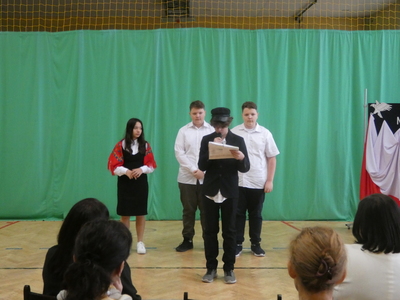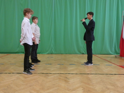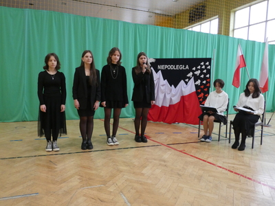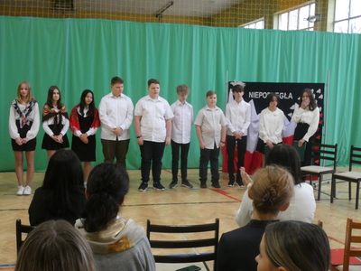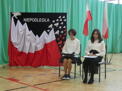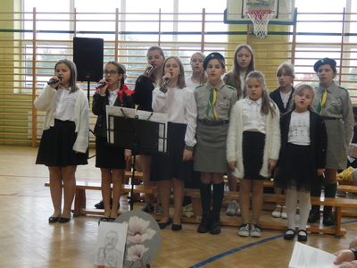 Dnia 16 listopada 2022r. odbyła się uroczysta akademia z okazji Narodowego Święta Niepodległości. Montaż słowno- muzyczny przygotowany przez uczniów klasy VIII pod opieką Pani Joanny Smardz i Pana Waldemara Stępnia wprowadził zgromadzonych w atmosferę wydarzeń poprzedzających datę 11 listopada 1918 roku. Występujący uczniowie przybliżyli sytuację polityczną kraju, jaka miała miejsce przed odzyskaniem przez Polskę niepodległości. Recytacje uczniów przeplecione zostały pieśniami patriotycznymi wykonanymi przez chór szkolny. Spotkanie niewątpliwie było lekcją historii i patriotyzmu.