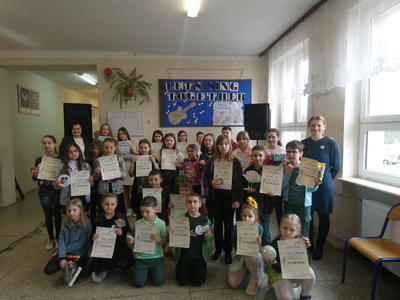 21 marca 2023r. odbył się szkolny festiwal piosenki anglojęzycznej “LET’S SING TOGETHER”. W konkursie wzięło udział 16 podmiotów wykonawczych: 10 solistów oraz 6 zespołów wokalnych. Jury oceniało wystepy w kategoriach: solista/zespół wokalny oraz klasy I-IV/V-VIII. W kategorii solista I miejsce zdobył Dominik Żyła z kl.II piosenką “Fairytale”oraz Weronika Karbarz z kl.VI “Yes to heaven”. W kategorii zespół wokalny najwyższe miejsce wyśpiewała Zuzia Marczak I Milenka Kaczor z kl.I piosenką “Stretch your body” oraz Oliwia Sokal I Zuzia Żołądź z kl. VIII “Solo”. ‘’ Solo” także otrzymało zaszczytne miano piosenki publiczności.