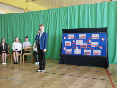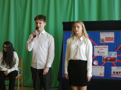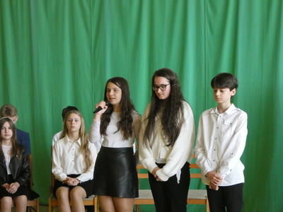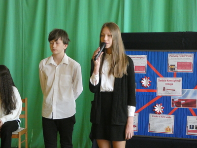 Dnia 5 maja odbyła się w naszej szkole uroczysta akademia z okazji 232 rocznicy uchwalenia Konstytucji 3-Maja. W części słowno- muzycznej zaprezentowali się uczniowie klasy VI oraz VII. Prowadzący przypomnieli najważniejsze wydarzenia związane z obradami Sejmu Wielkiego. Tłem do recytacji uczniów były utwory muzyczne oraz piosenki patriotyczne wykonane przez szkolny chór pod kierunkiem Pani Aliny Derylak. Nad przebiegiem uroczystości czuwali Pani Joanna Smardz i Pan Waldemar Stępień.