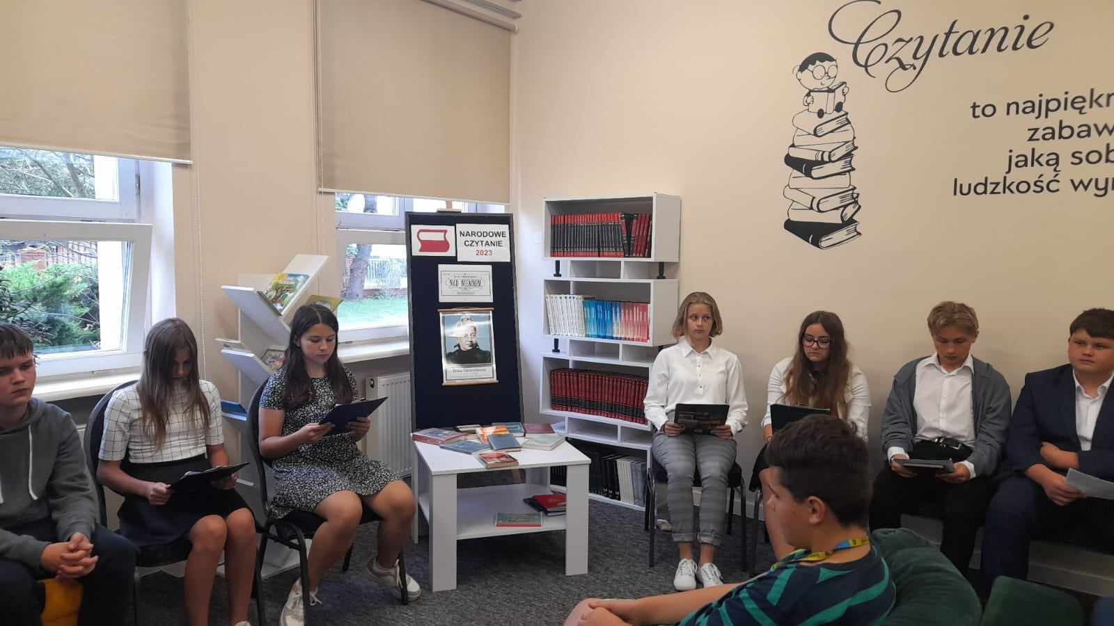 Uroczyste Narodowe Czytanie 2023 powieści „Nad Niemnem” w Kąciku Czytelnika w Publicznej Szkole Podstawowej w Harasiukach odbyło się w czwartek, 14 września. Włączając się do inicjatywy Pary Prezydenckiej, uczniowie klasy V, VI, VII i VIII naszej szkoły razem z Panią Dyrektor Renatą Mucha oraz nauczycielami wzięli aktywny udział w tym wydarzeniu.
