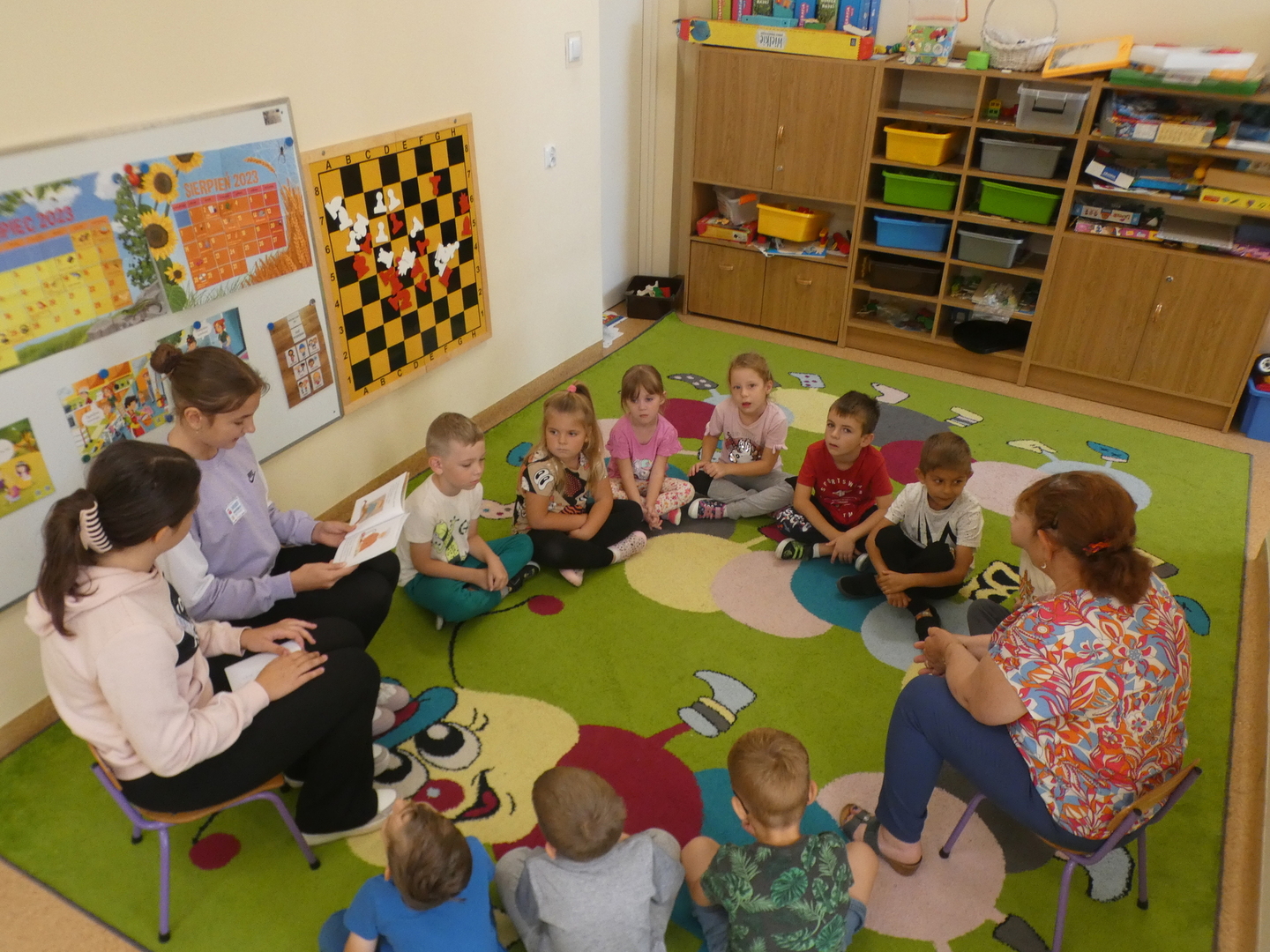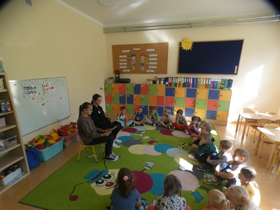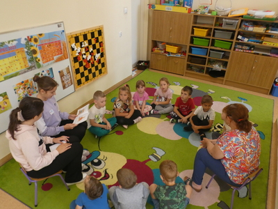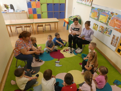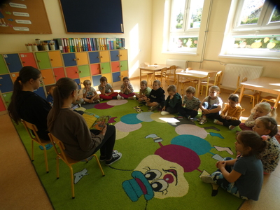 W Dniu Głośnego Czytania uczennice klasy VI i VII czytały grupom trzy, cztero, pięcio i sześciolatków.