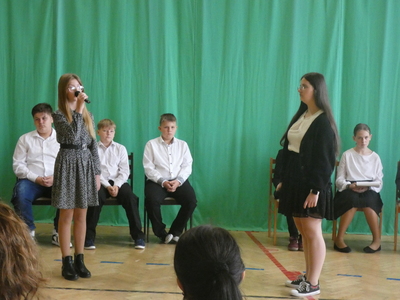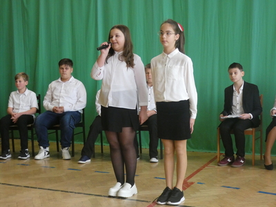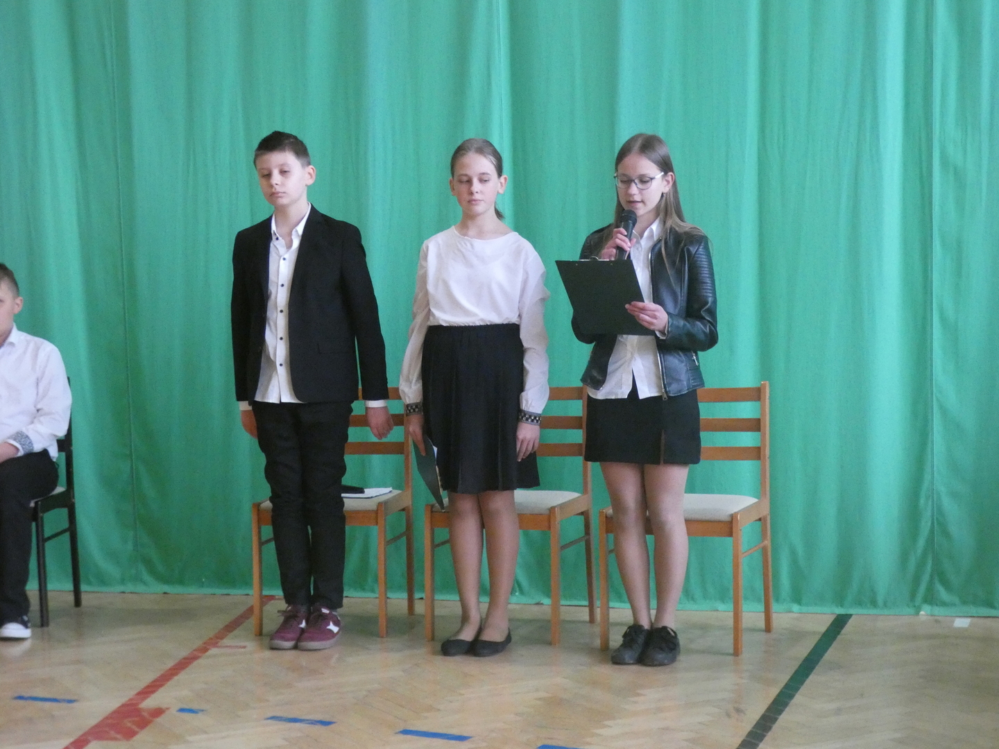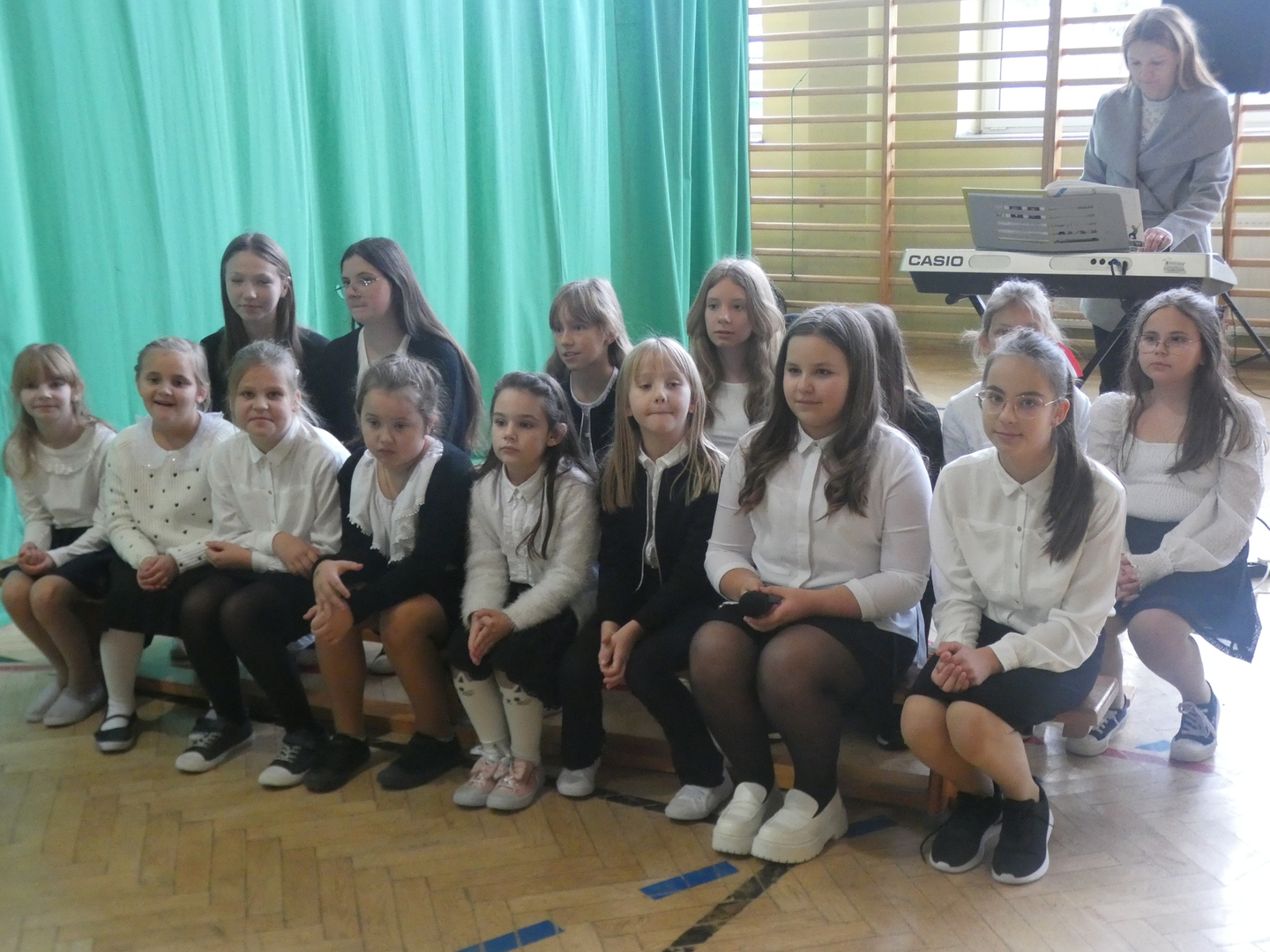 w czasie 123 lat niewoli, stale wychodził z inicjatywą walki o ojczyznę. Polacy nie tracili ducha, wierzyli, że Polska odzyska niepodległość. W część artystycznej zaprezentowali się uczniowie klasy VI przygotowani przez Panią Joannę Smardz i Pana Waldemara Stępnia. Oprawę muzyczną zapewnił szkolny chór przygotowany przez Panią Alinę Derylak.