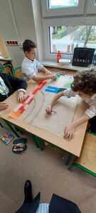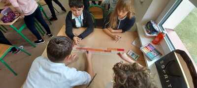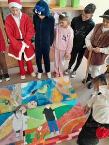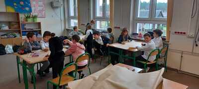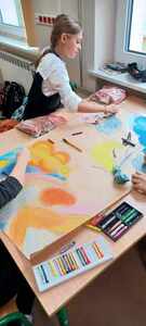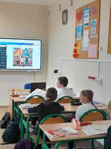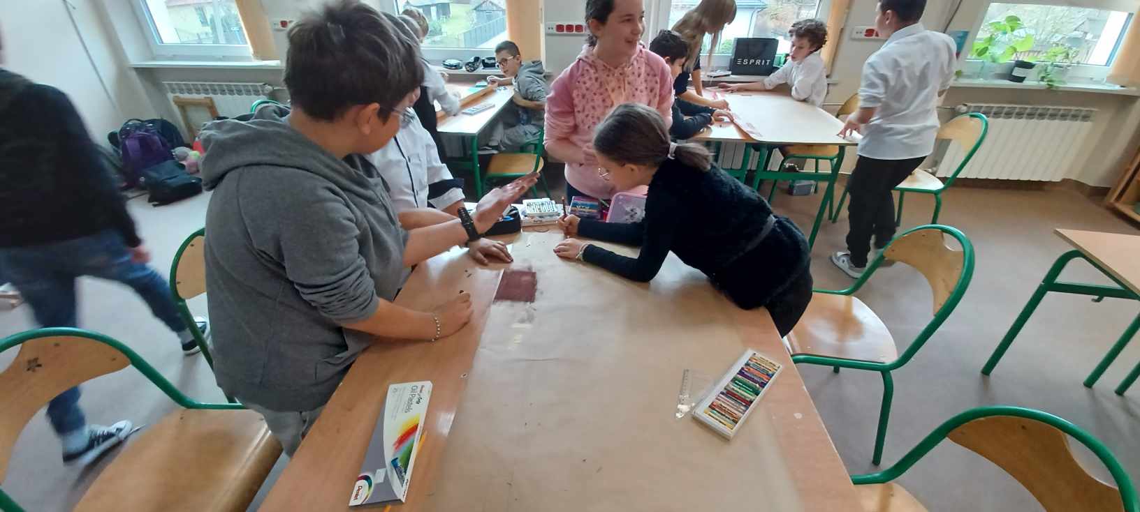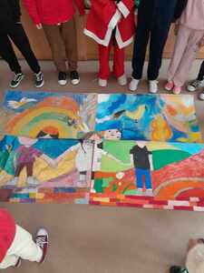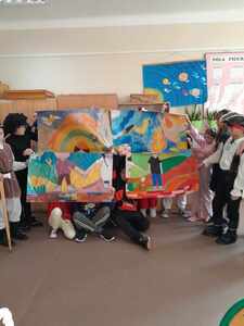 Klasa V wykonała pierwsze zadanie w projekcie edukacyjnym "Wspólnie mocniejsi - uczymy się przez integrację". Uczniowie mieli stworzyć kolorowy mural. Najpierw poszukaliśmy informacji o tym, co to są murale, po co się je tworzy, kto je tworzy i co można w ten sposób przekazać innym. My chcieliśmy przekazać światu, że dla nas przyjaźń jest bardzo ważna. Wykorzystaliśmy do inspiracji sztuczną inteligencję, która na podstawie przygotowanych przez nas haseł o przyjaźni przygotowała nam piękny obraz. Podzieliliśmy się pracą, a to efekty naszych działań.