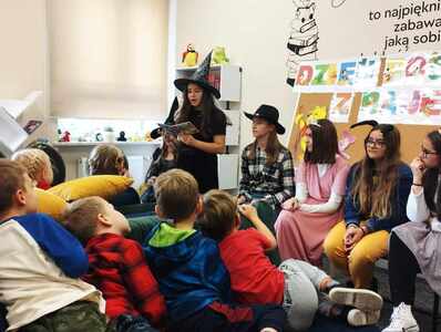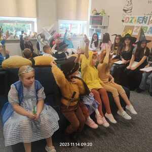 We wtorek, 14 listopada w naszej szkole odbył się Dzień Postaci z Bajek. Baśnie i bajki cieszą się wielkim powodzeniem zarówno u dzieci jak i u dorosłych. Są dla wszystkich bogatych źródłem przeżyć i wrażeń, nie zastąpionym sposobem wzbogacania wyobraźni. Dlatego ten dzień miał dzieciom przypomnieć jak ważne są bajki i że warto do nich powracać. Popularyzowaliśmy tradycyjne bajki bez przemocy, takie gdzie dobro wygrywa a zło zostaje ukarane. W tym wyjątkowym dniu chętni uczniowie z klas I-VIII przybyli do szkoły przebrani w przepiękne bajkowe stroje. Uczniowie klas I-III uczestniczyli w Kąciku Czytelnika we wspólnych zabawach przygotowanych przez uczennice klas VII i VIII. Dzieci wysłuchały fragmentów najbardziej znanych bajek, rozpoznawały bajkowe postacie i tytuły bajek, z których pochodzą.