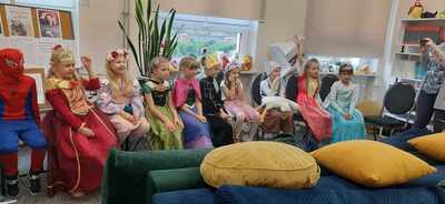 W tym dniu Kącik Czytelnika zamienił się w niezwykłą krainę bajkowych postaci. Z pewnością był to niesamowity dzień, ponieważ uśmiech królował na wszystkich twarzach.