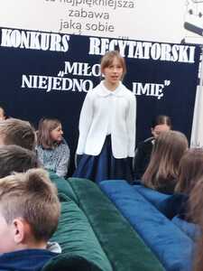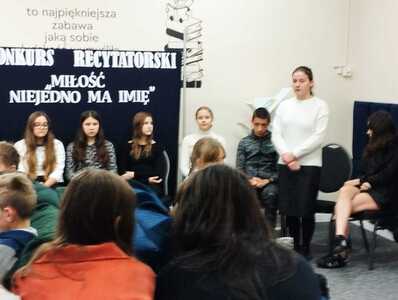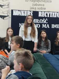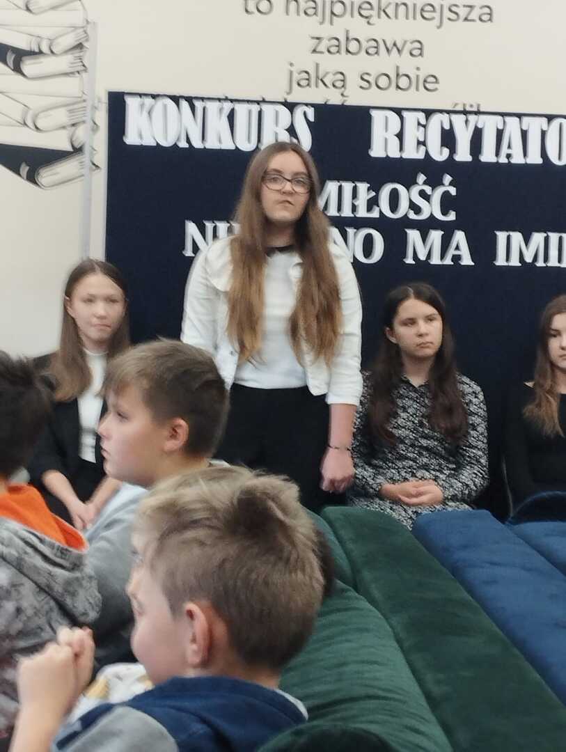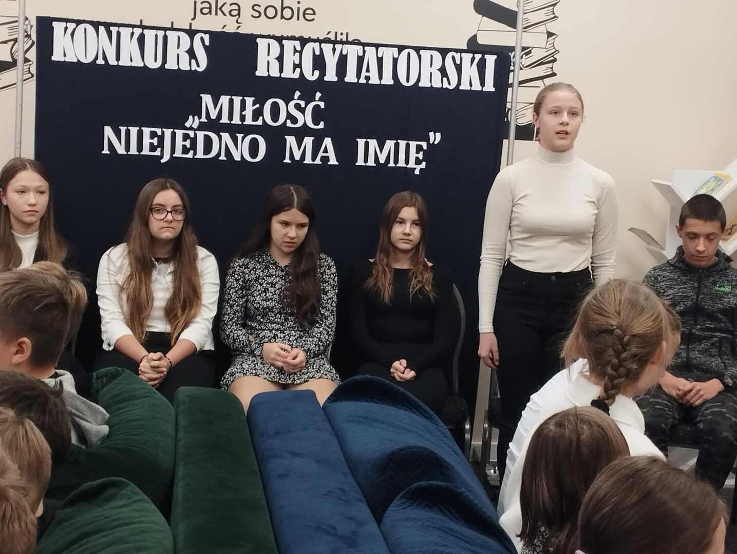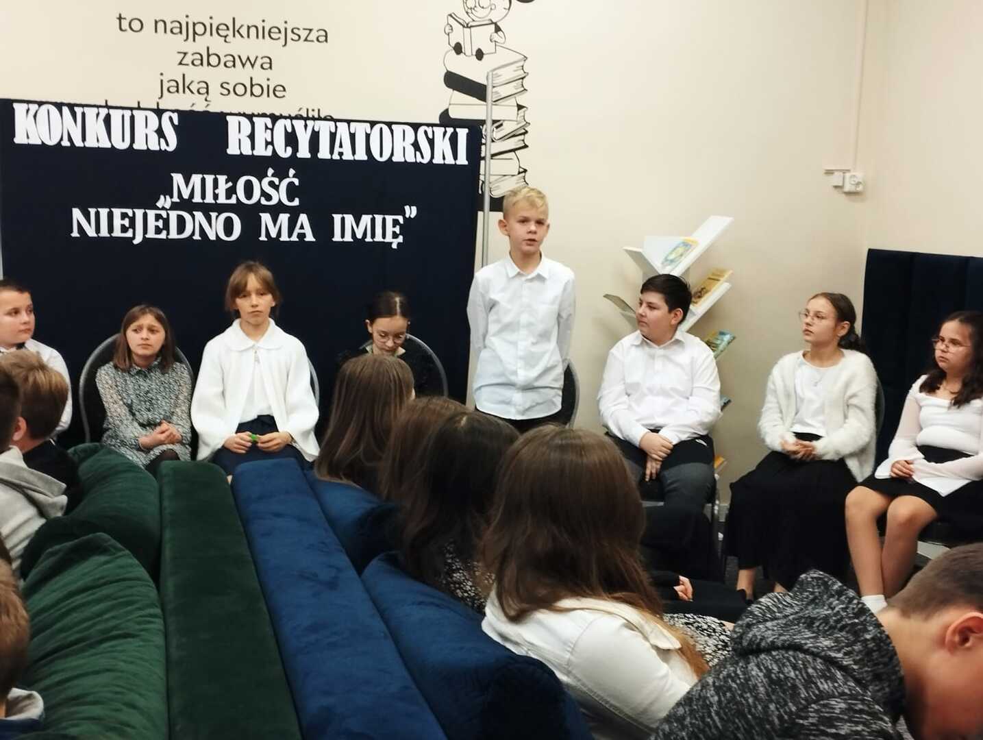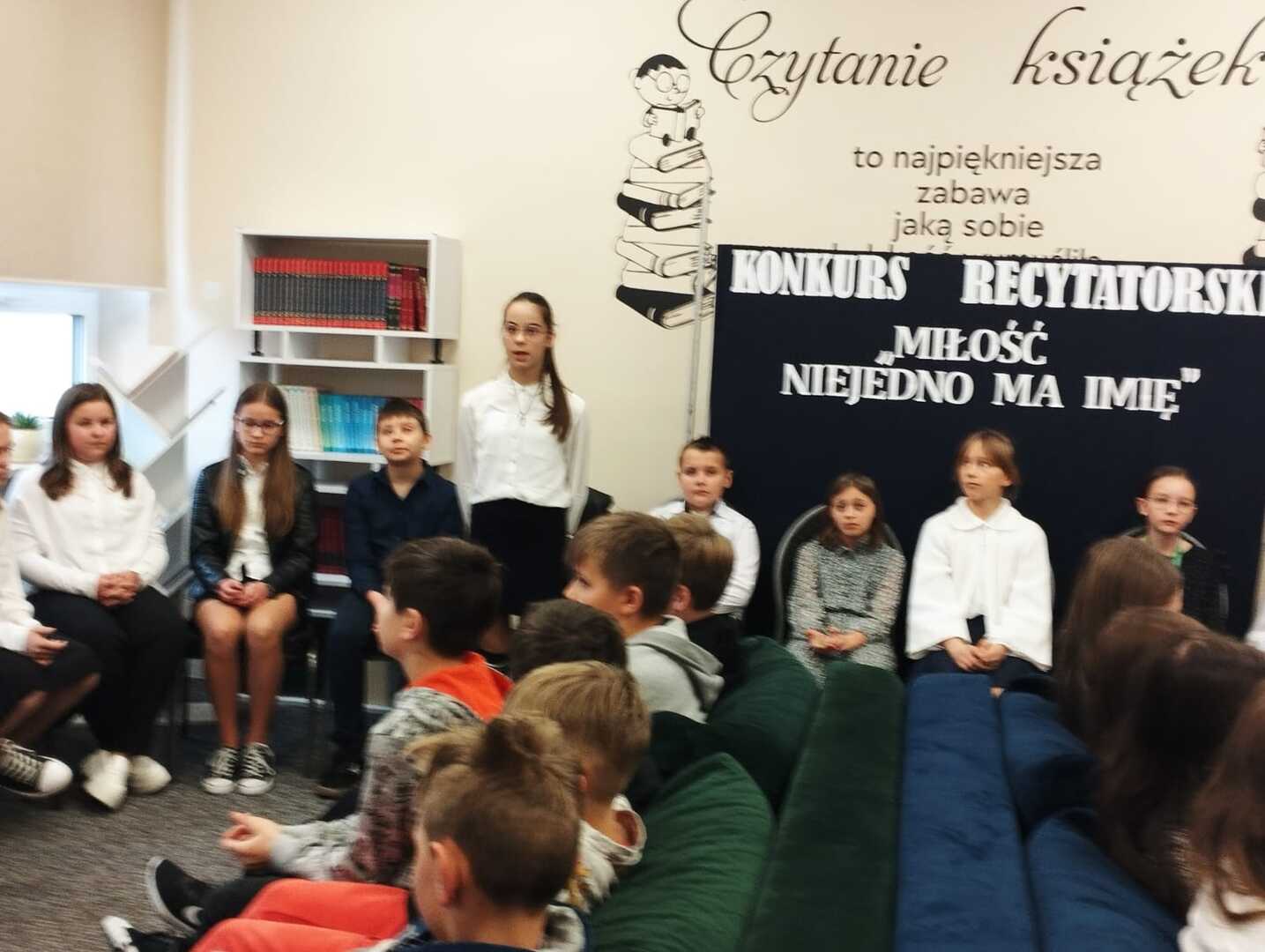 18 grudnia 2023r. w bibliotece szkolnej odbył się Konkurs Recytatorski „Miłość niejedno ma imię”. Udział w nim wzięli uczniowie klas: IV-VIII szkoły podstawowej. Uczestnicy recytowali wybrane utwory lub ich fragnenty: