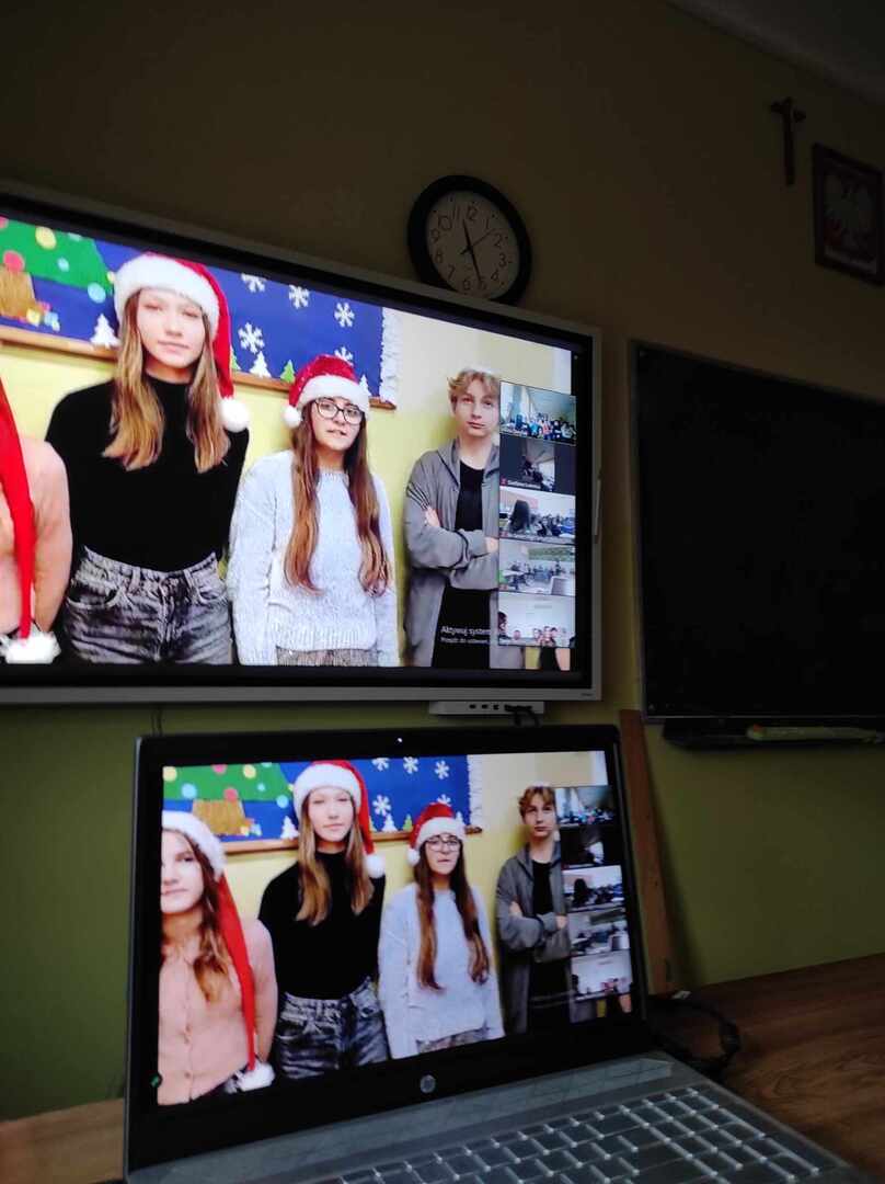 Klasa VII, która od początku roku realizuje międzynarodowy projekt eTwinning „One world, unique countries”, spotkała się dzisiaj online ze swoimi projektowymi partnerami z Grecji, Słowenii, Mołdawii, Gruzji i Hiszpanii. Uczniowie przedstawili się i krótko opowiedzieli o sobie, posłuchali o zwyczajach bożonarodzeniowych w innych krajach. Podsumowane zostało również realizowane ostatnio zadanie projektowe dotyczące różnych świąt obchodzonych w poszczególnych krajach. Wkrótce zakończony zostanie ebook o tych świętach, którym się pochwalimy. Uczniowie gromadzili informacje i przygotowywali prezentacje na ich temat. Zdobyta wiedza została sprawdzona w trakcie wspólnego quizu na Kahoot. Z okazji zbliżających się świąt, stworzona została wspólna prezentacja zawierający opisy i zdjęcia potraw przygotowywanych na Święta Bożego Narodzenia oraz padlet, w którym można posłuchach kolęd z krajów biorących udział w projekcie https://padlet.com/fernandohidalgoalvarez/christmas-carols-in-our-countries-one-world-unique-countries-a0ahtxpdyp27mlo