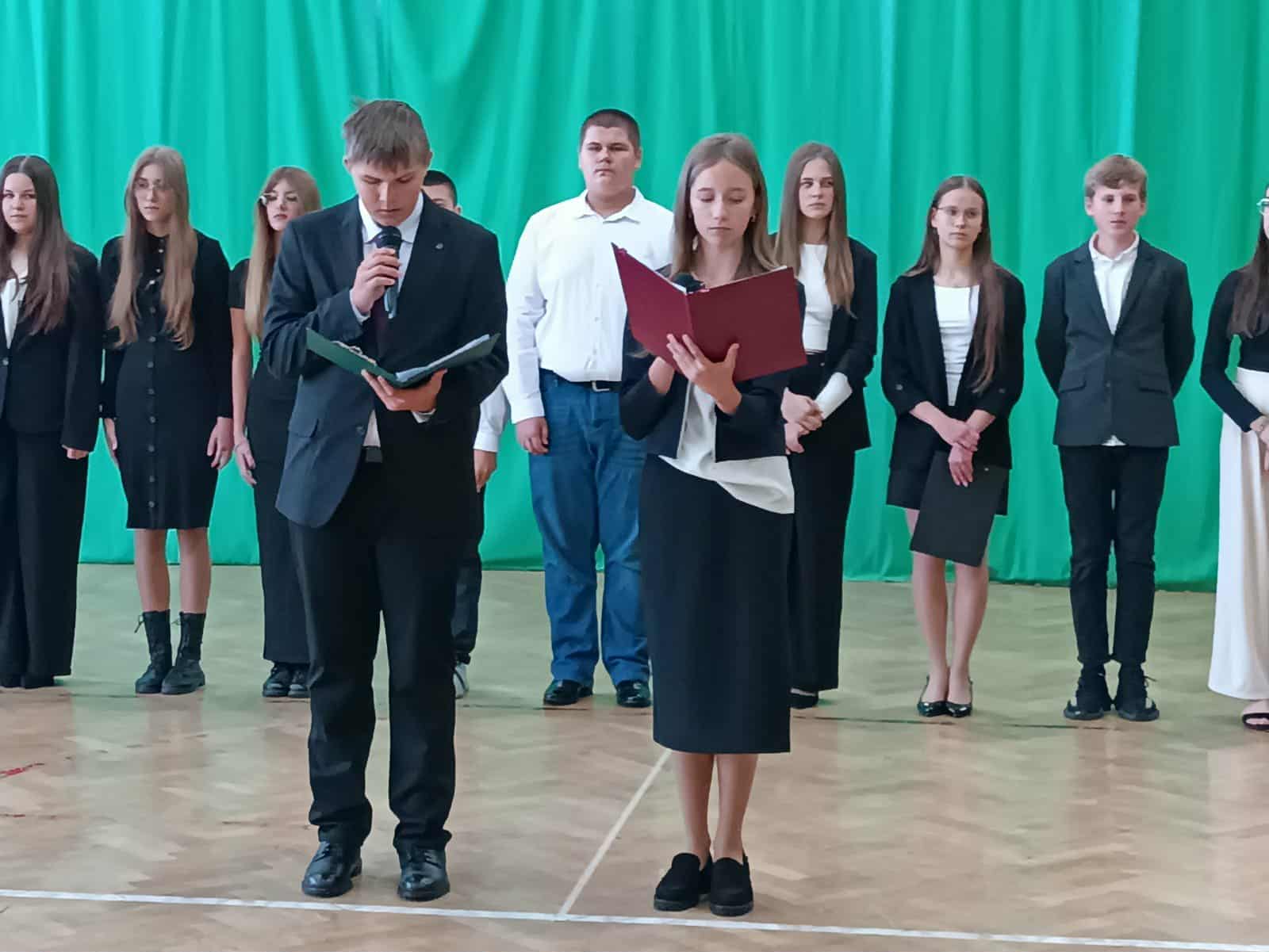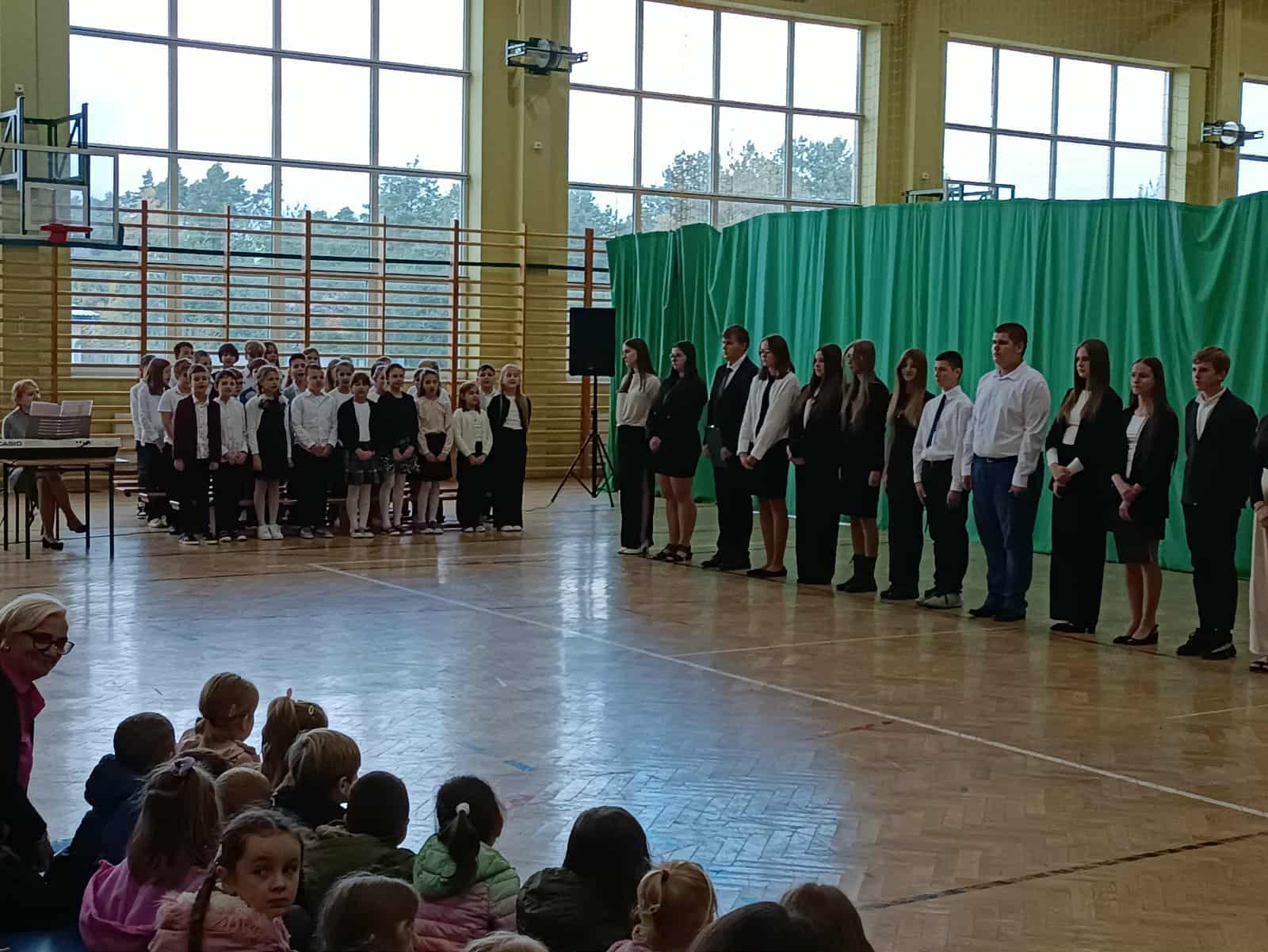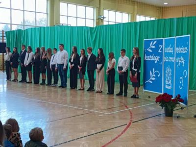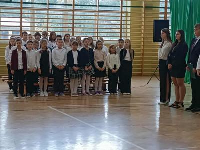 W poniedziałek, 13 października 2025 roku, w naszej szkole odbyła się uroczysta akademia z okazji Dnia Edukacji Narodowej – święta wszystkich nauczycieli, wychowawców oraz pracowników oświaty. W imieniu całej społeczności szkolnej uczniowie złożyli życzenia wszystkim pedagogom, wyrażając wdzięczność za przekazywaną wiedzę i wsparcie. Część artystyczną przygotowali uczniowie klasy 8 pod kierownictwem p. M.Sajkiewicz - Papież i p. A.Derylak, którzy z humorem i serdecznością zaprezentowali program słowno-muzyczny. Występy uczniów dostarczyły wielu wzruszeń i uśmiechu, a wspólne śpiewanie piosenek stworzyło radosną atmosferę. Na zakończenie akademii uczniowie wręczyli nauczycielom i pracownikom szkoły symboliczne kwiaty, dziękując za ich pracę i poświęcenie. Uroczystość przebiegła w miłej i podniosłej atmosferze, przypominając wszystkim, jak ważną rolę w życiu każdego człowieka odgrywa edukacja i ludzie, którzy ją tworzą.