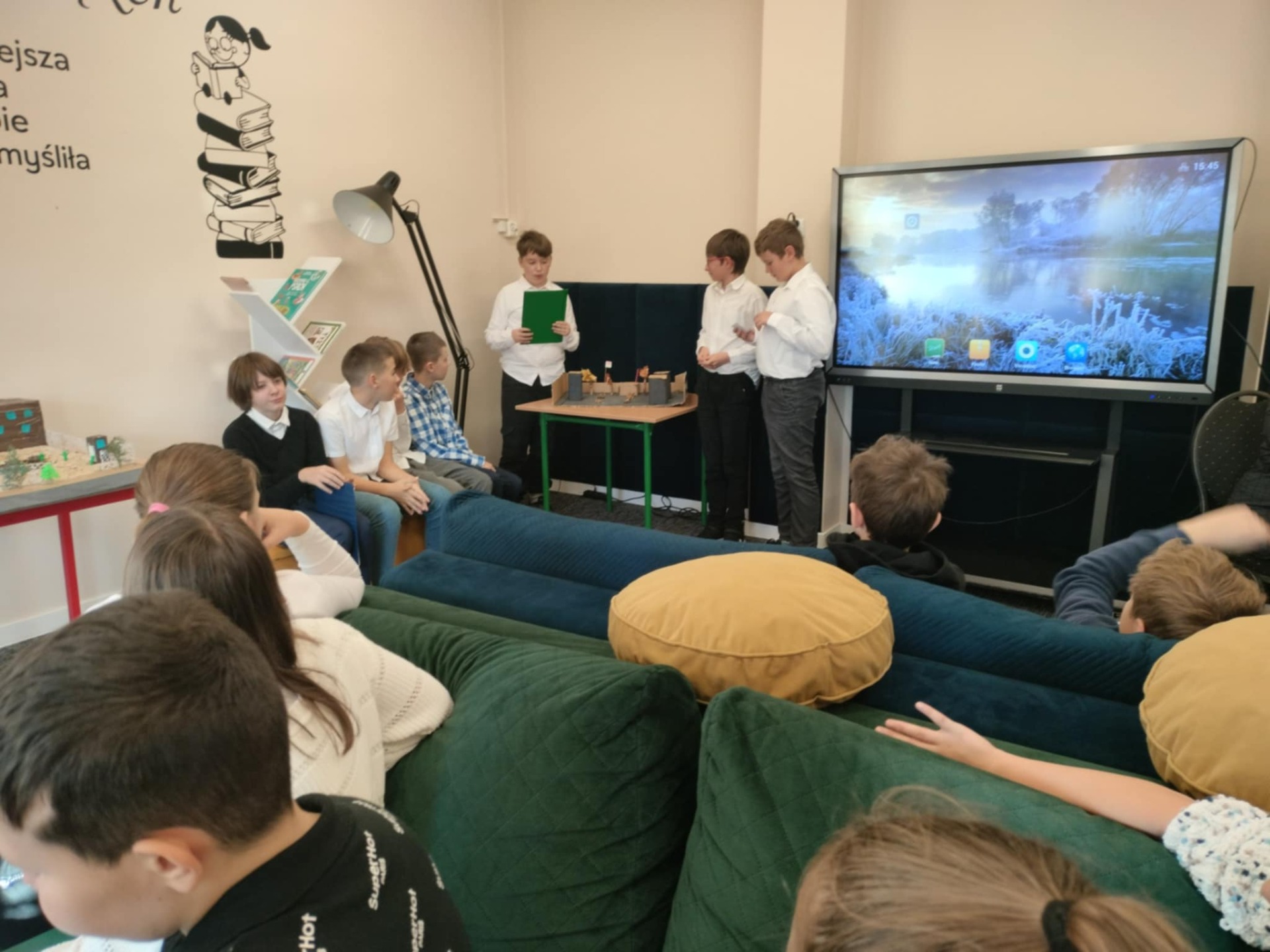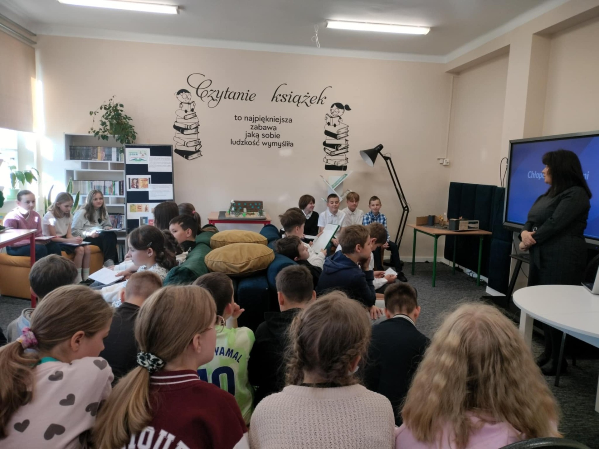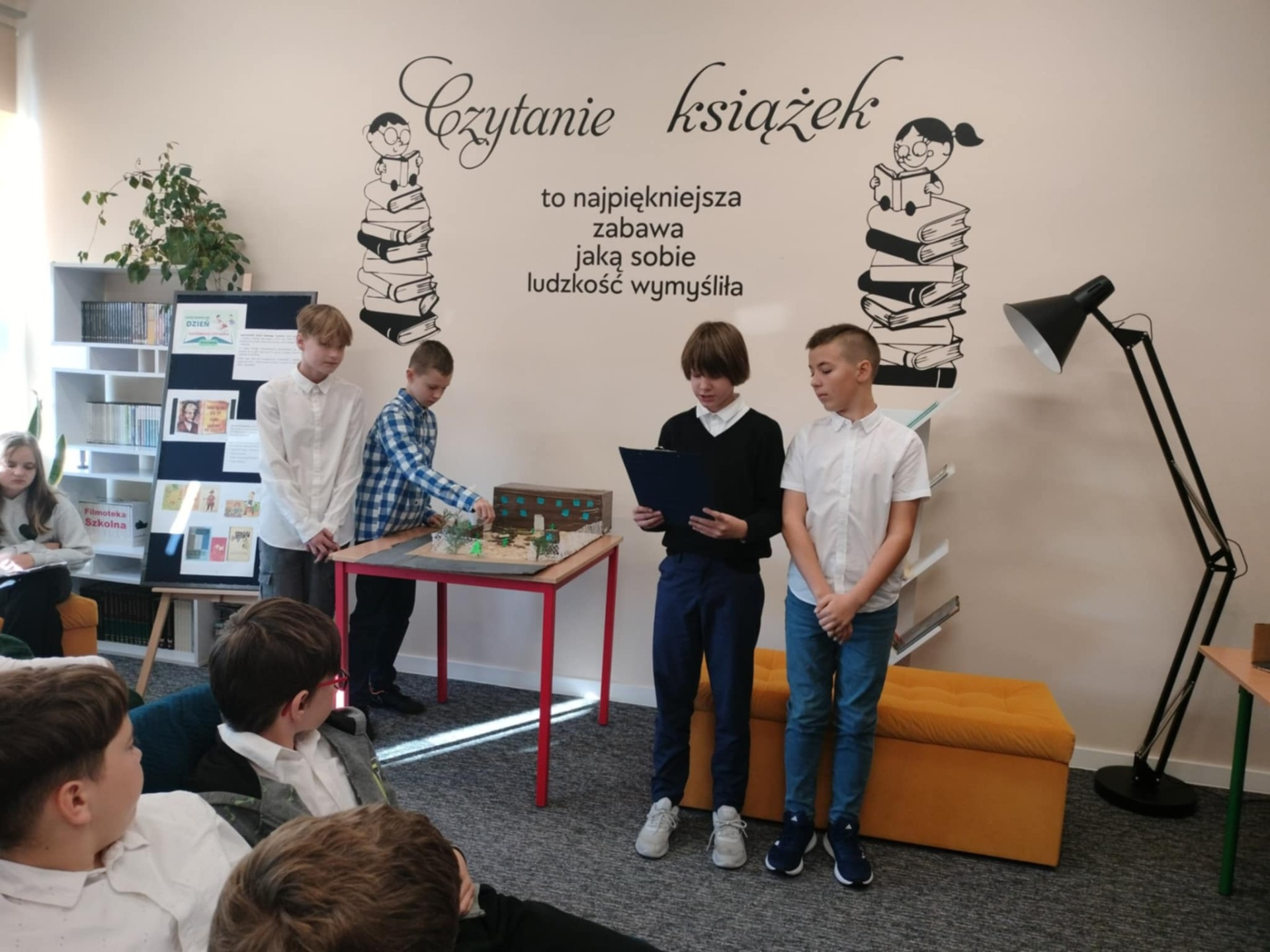 W pażdzierniku w Kąciku Czytelnika odbyło się spotkanie dwóch klas IV – V zorganizowane w kontekście realizowanej na lekcjach języka polskiego innowacji pedagogicznej ,,Znam lektury szkolne”. Podczas spotkania uczniowie klasy V zaprezentowali przygotowane przez nich makiety Placu Broni. Uczniowie chętnie pracowali w grupach w celu podsumowania omawianej lektury Ferenca Molnara „Chłopcy z Placu Broni”. Zaproszeni na spotkanie uczniowie klasy IV bardzo uważnie słuchali ciekawostek o lekturze i jej bohaterach, a także z zainteresowaniem obejrzeli makiety. Celem spotkania było promowanie czytelnictwa wśród uczniów, motywowanie dzieci do czytania lektur szkolnych. Nad przebiegiem spotkania czuwały pani Aneta Maciuk Bogusz i pani Teresa Kargol.