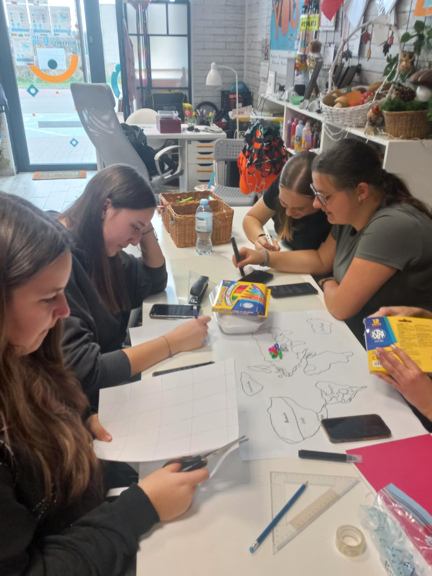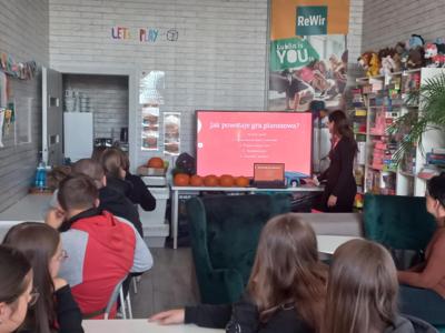 Po krótkiej prezentacji wprowadzającej uczniowie, pracując w grupach, opracowali własne, autorskie gry planszowe. Motywem przewodnim zajęć były podróże, które zainspirowały uczestników do tworzenia oryginalnych pomysłów i ciekawych rozwiązań.