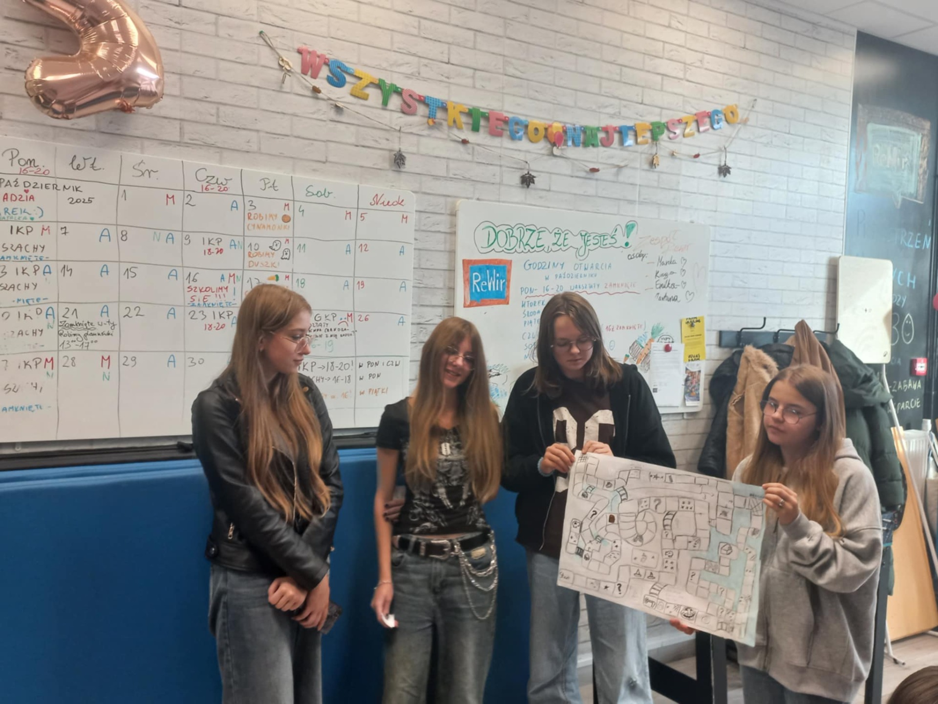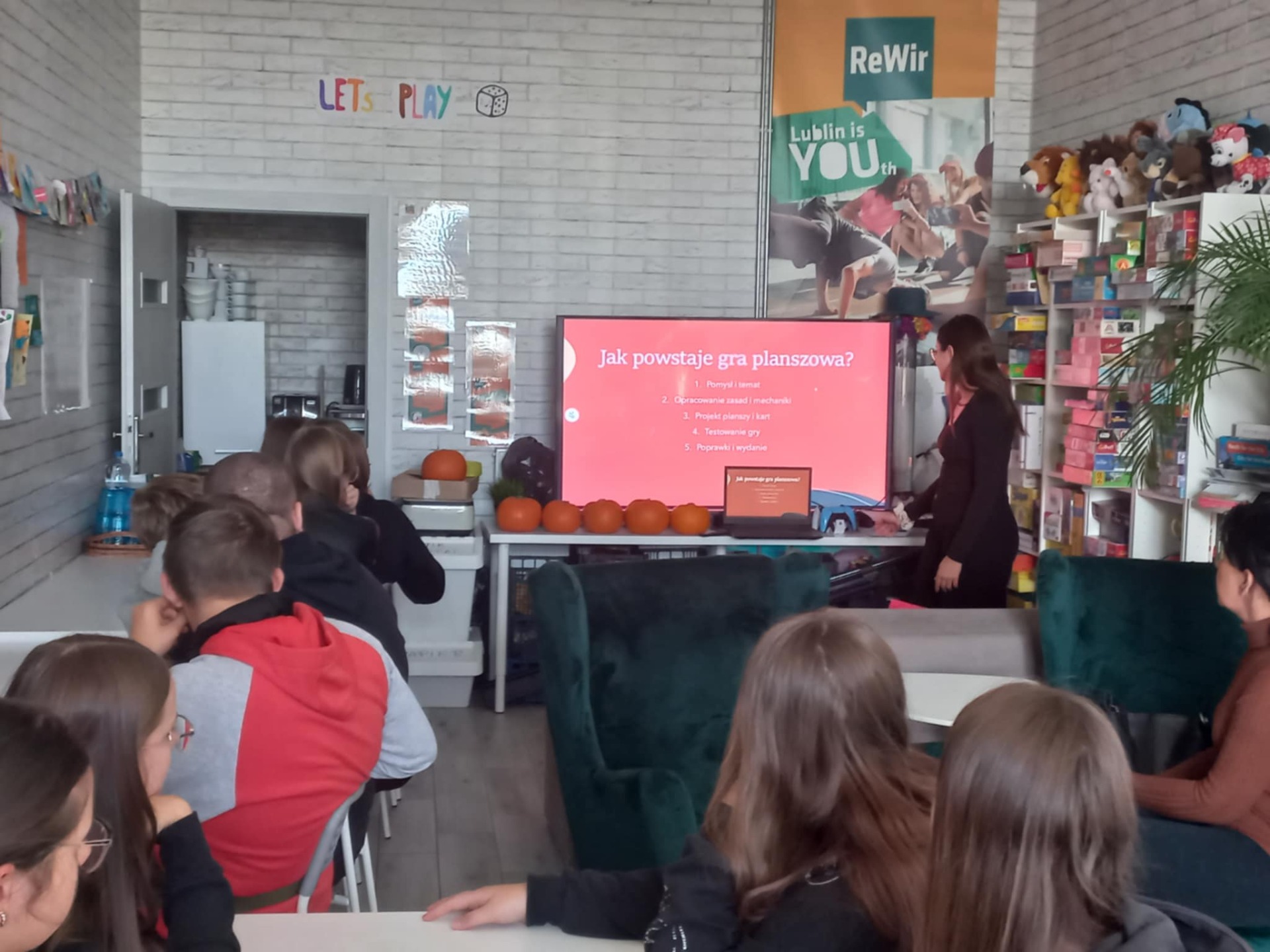 W ramach projektu „Planszówki – (za)grajmy razem” uczniowie klasy VIII wzięli udział w warsztatach wyjazdowych z tworzenia gier planszowych. Zajęcia odbyły się w młodzieżowej przestrzeni ReWir w Lublinie, gdzie pod opieką doświadczonych animatorów młodzież miała okazję poznać tajniki projektowania gier.