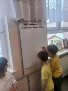 Uczniowie tworzyli m.in. plakaty na temat życzliwości, zastanawiając się nad tym, w jaki sposób drobne gesty, dobre słowa i empatia wpływają na relacje międzyludzkie. Rozmowy, ćwiczenia i wspólna praca pozwoliły spojrzeć na życzliwość jako na wartość, która buduje poczucie bezpieczeństwa, wzmacnia więzi i sprawia, że codzienne funkcjonowanie w szkole staje się przyjemniejsze i bardziej wspierające.