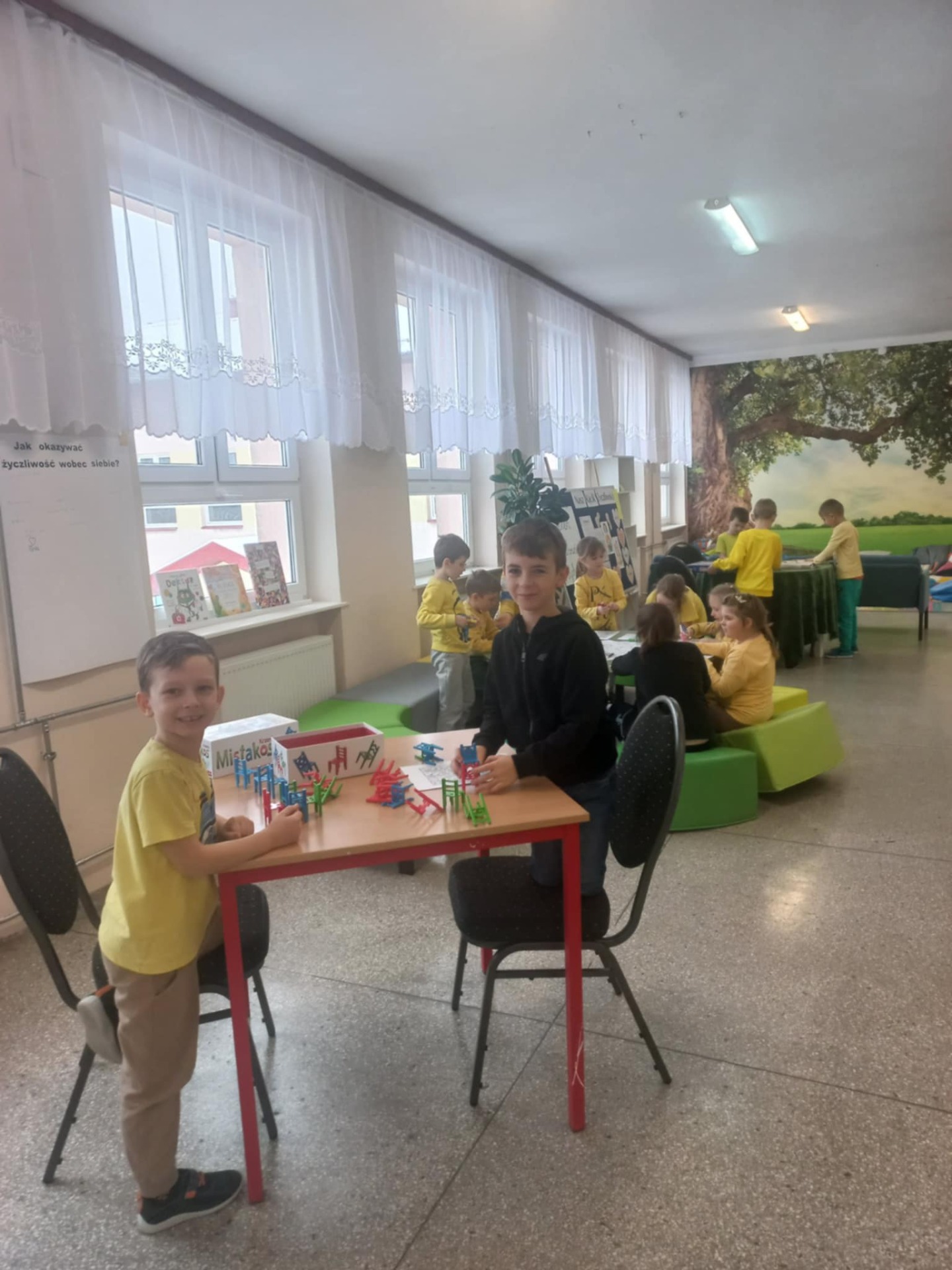 Z okazji Dnia Życzliwości w przygotowanym wcześniej kąciku relaksacji odbyły się warsztaty prowadzone przez panią pedagog. Zajęcia miały formę aktywnych metod pracy, realizowanych poza tradycyjną salą lekcyjną, co sprzyjało swobodnej atmosferze i większemu zaangażowaniu uczniów.